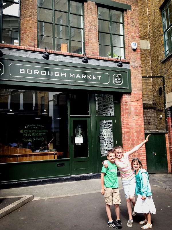 We walked across London bridge and headed to Borough Market. Which I quickly realized is not the place to eat when you’ve stretched your kids for too long and they’re starving and tired. They did not enjoy the aesthetics of that awesome place filled with amazing food stalls. They just wanted the first thing they saw, and were very impatient waiting for it. These guys must still be a bit jet lagged, they were not entirely pleasant.